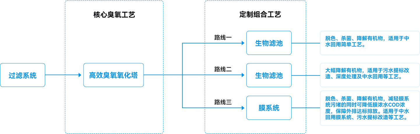设备集成化程度高,可根据实际生产需要进行“臭氧+”模块化工艺组合。